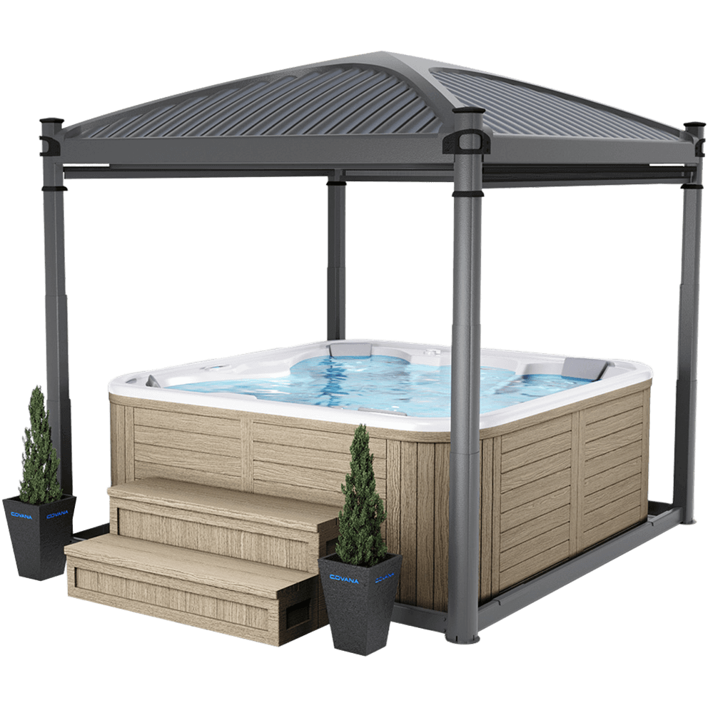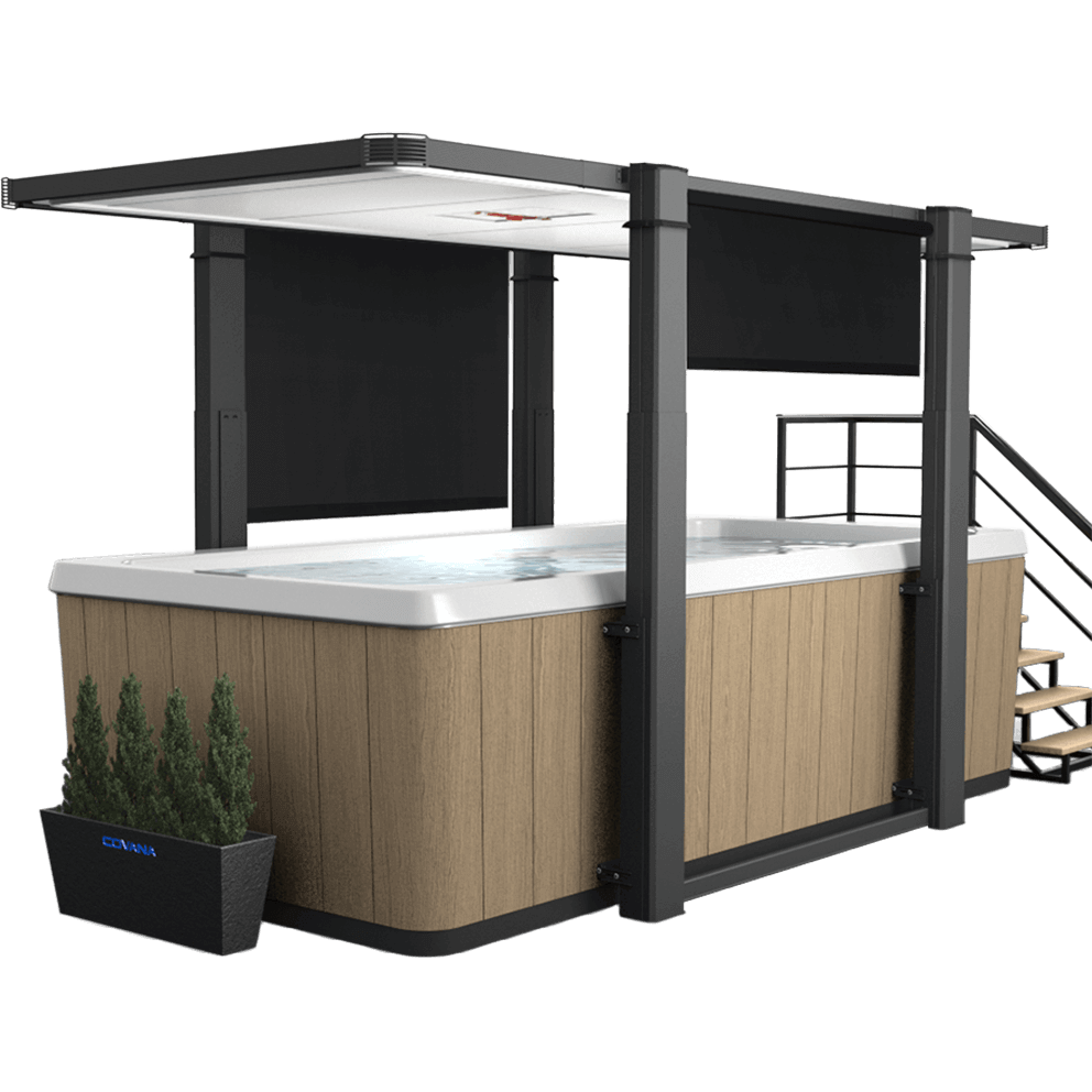 Born from a desire to create a simpler, more enjoyable, and more accessible spa experience, Covana offers far more than a regular hot tub cover. In less than 30 seconds, your Covana cover transforms into a modern, luxurious gazebo or pergola that shields you from the weather and gives you the comfort and privacy you want. By eliminating the weight of a traditional cover, the Covana system makes accessing the hot tub quick and effortless.