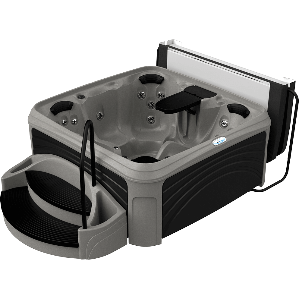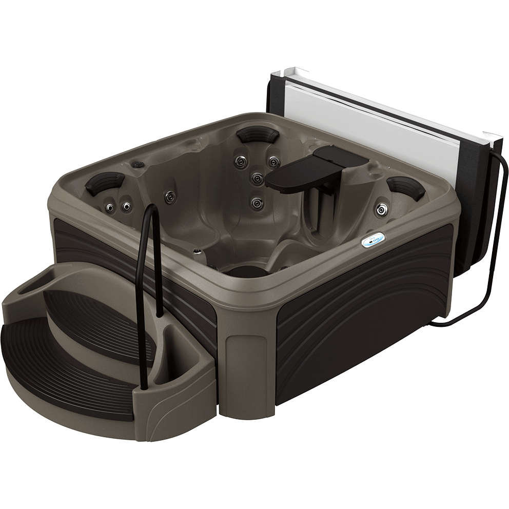 All Suite spas includes the extra wide integrated Suite Steps with slip resistant step treads, sturdy handrail and two side planters plus bonus storage area inside the step. The suite also includes a quality Cover Lifter to make lifting, storing and replacing your cover easy and convenient between every use. This 4 person hot tub with a full-body lounge has 25 adjustable jets that target shoulders, back muscles and feet for a massaging hydrotherapy experience. Enjoy the comfort pillow headrests to enhance your relaxation. For entertaining or unwinding, the Fountain with Back-lit LED Light and 8 exterior cabinet lights allow you to set the perfect mood.