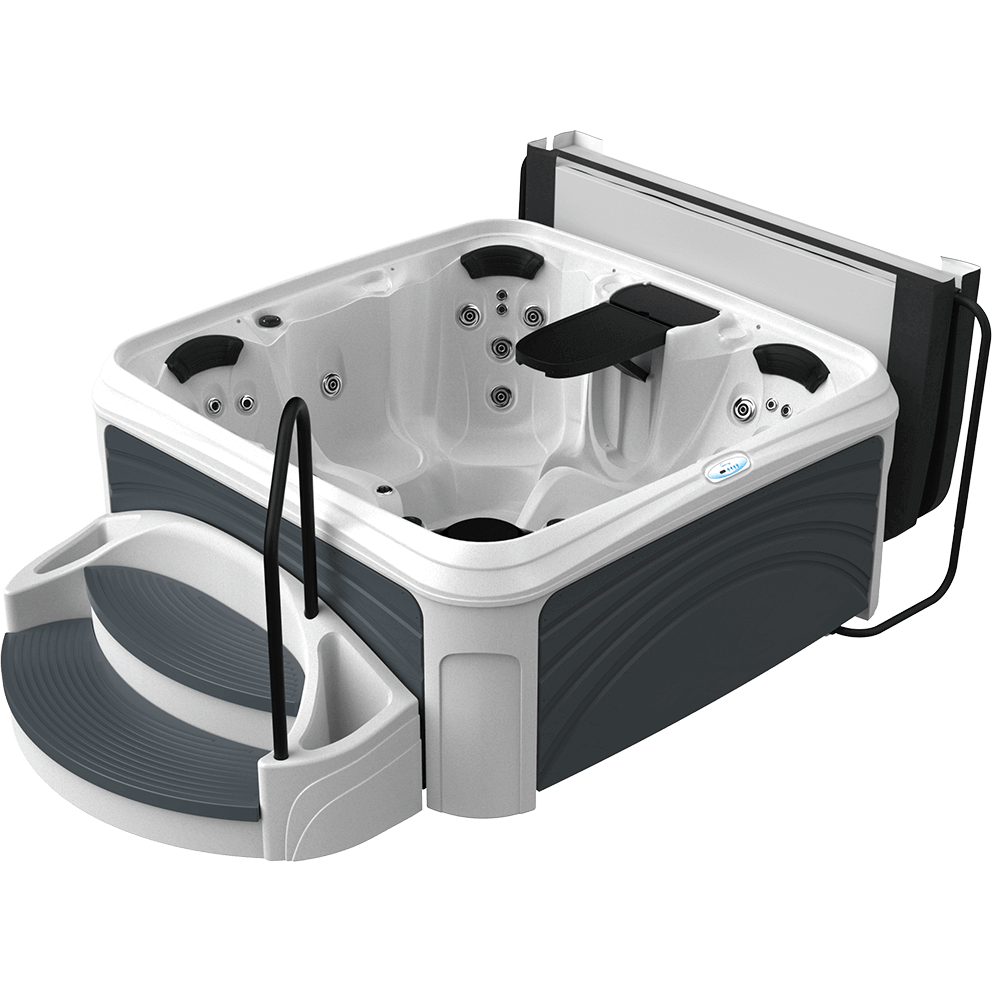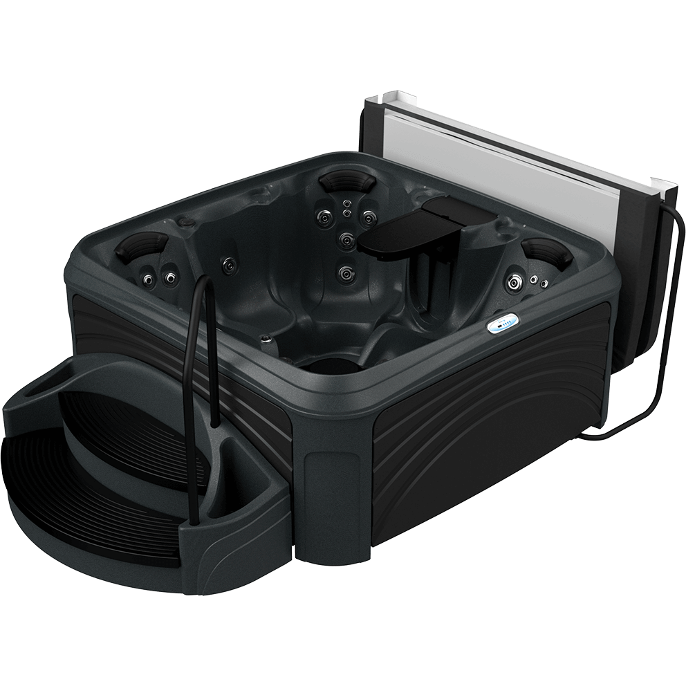 All Suite spas include the extra wide integrated Suite Steps with slip resistant step treads, sturdy handrail and two side planters plus bonus storage area inside the step. The suite also includes a quality Cover Lifter to make lifting, storing and replacing your cover easy and convenient between every use. This 4-person hot tub with a full-body lounge has 35 adjustable jets that target shoulders, back muscles and feet for a massaging hydrotherapy experience. Enjoy the comfort pillow headrests to enhance your relaxation. For entertaining or unwinding, the Fountain with Back-lit LED Light and 8 exterior cabinet lights allow you to set the perfect mood.