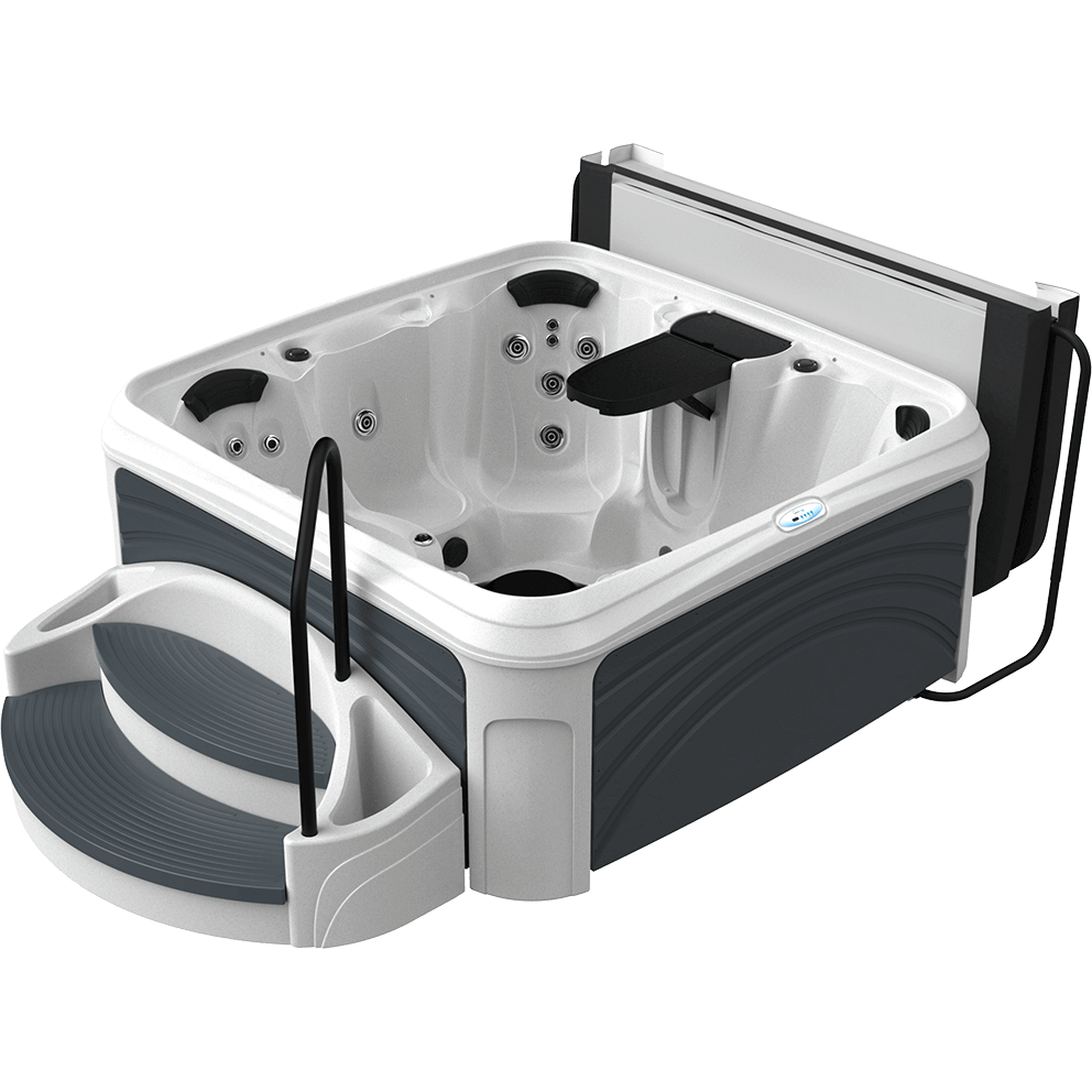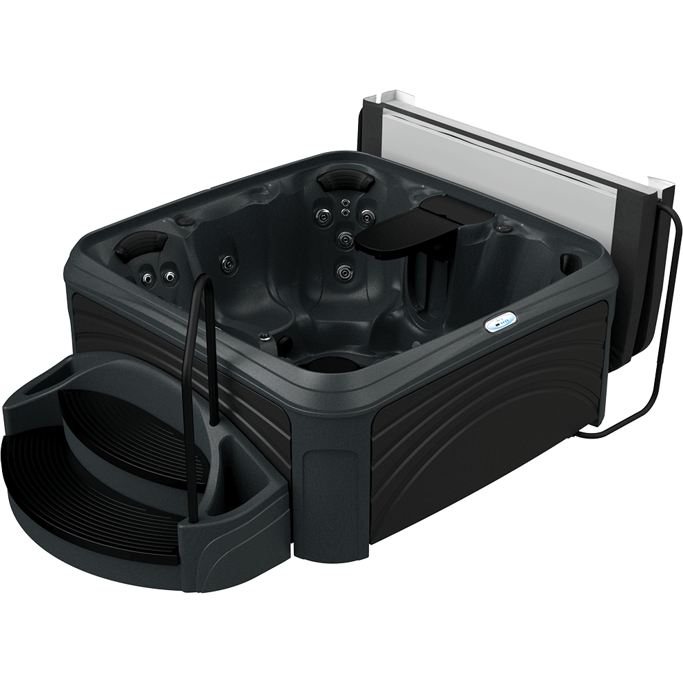 All Suite spas includes the extra wide integrated Suite Steps with slip resistant step treads, sturdy handrail and two side planters plus bonus storage area inside the step. The suite also includes a quality Cover Lifter to make lifting, storing and replacing your cover easy and convenient between every use. This 5 person hot tub has 35 adjustable jets that target shoulders, back muscles and feet for a massaging hydrotherapy experience. Enjoy the comfort pillow headrests to enhance your relaxation. For entertaining or unwinding, the Fountain with Back-lit LED Light and 8 exterior cabinet lights allow you to set the perfect mood.